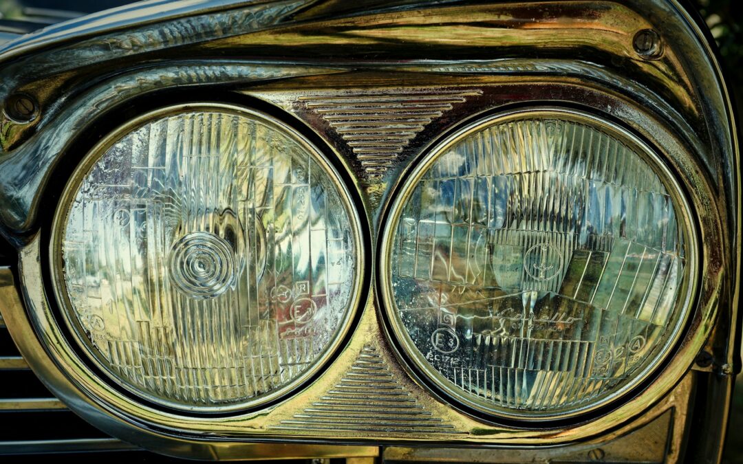 Headlights are first cleaned and taped off. After preparation is complete, foggy headlights are wet-sanded by hand, then followed up with a machine polish.